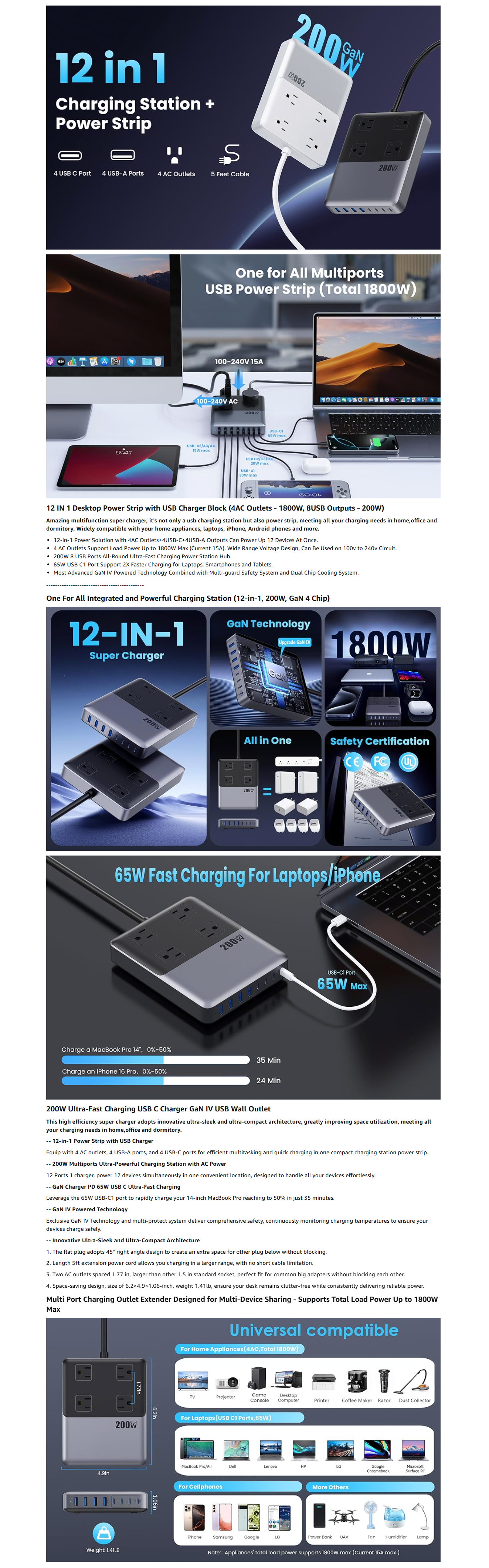 USB C Fast Charger, 100W GaN 6 Port Type Charging Station Hub Block Cube