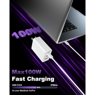 USB C Fast Charger, 100W GaN 6 Port Type Charging Station Hub Block Cube